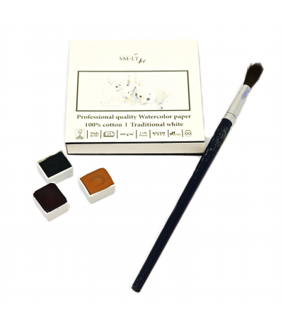Klasikinės baltos spalvos storas (400 gsm) akvarelinis popierius, pagamintas iš 100% medvilnės. Vidutinio šiurkštumo paviršius. Ilgaamžis popierius (Long-life). Gaminys yra klijuotas, turi ypač kietus viršelius. Lapai lengvai išsiplešia, puikiai tinka miniatiūroms. Vidinis popierius yra ilgaamžis, be rūgščių, pH neutralus.