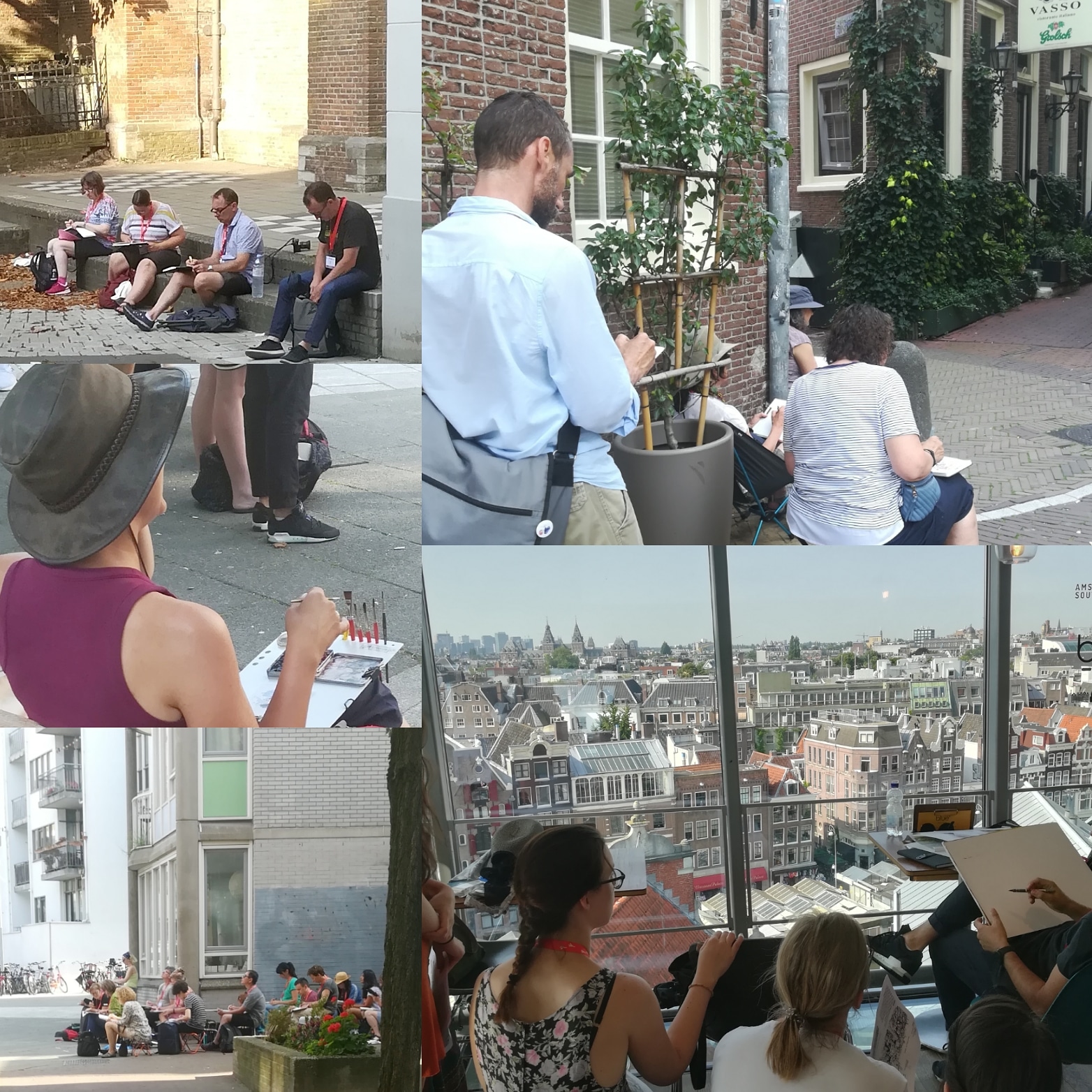 Sketching Amsterdam! Urban Sketchers all around. We are proud to be sponsors of Urbans Sketchers Symposium 2019.